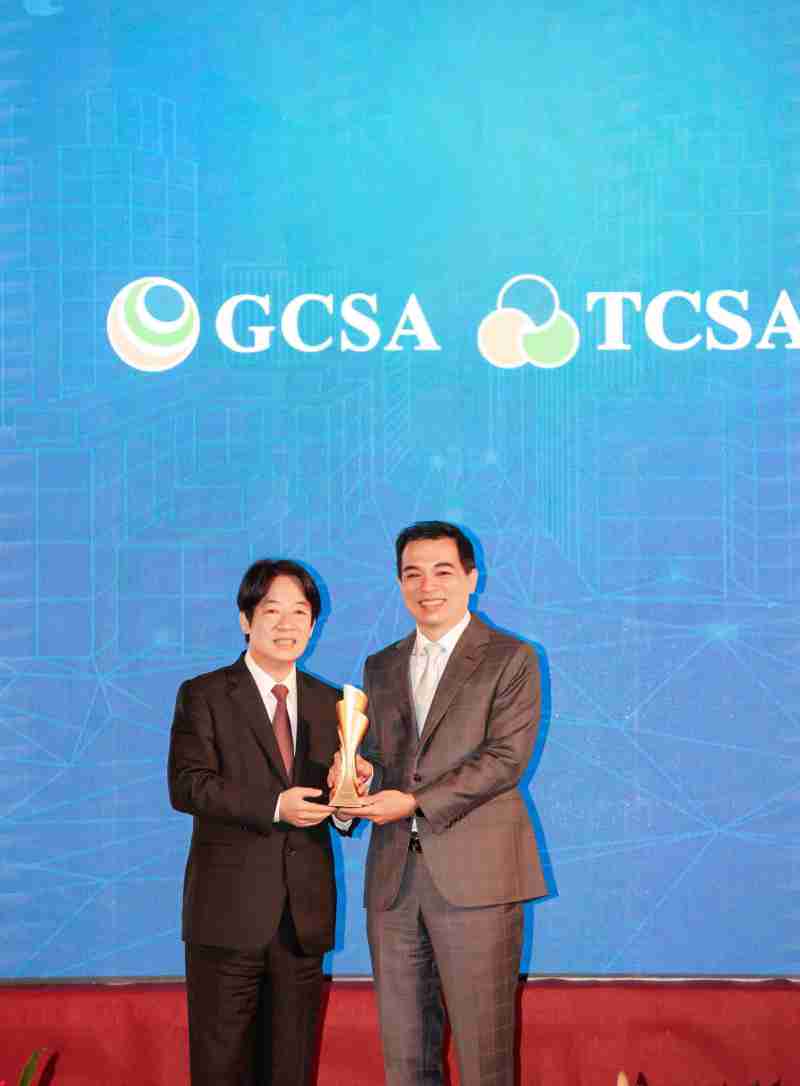 达全方位永续表现获全球永续奖及台湾永续奖肯定,,,由副总统赖清德颁奖 (左),,杏悦2总经理柯富仁 (右) 代表领奖