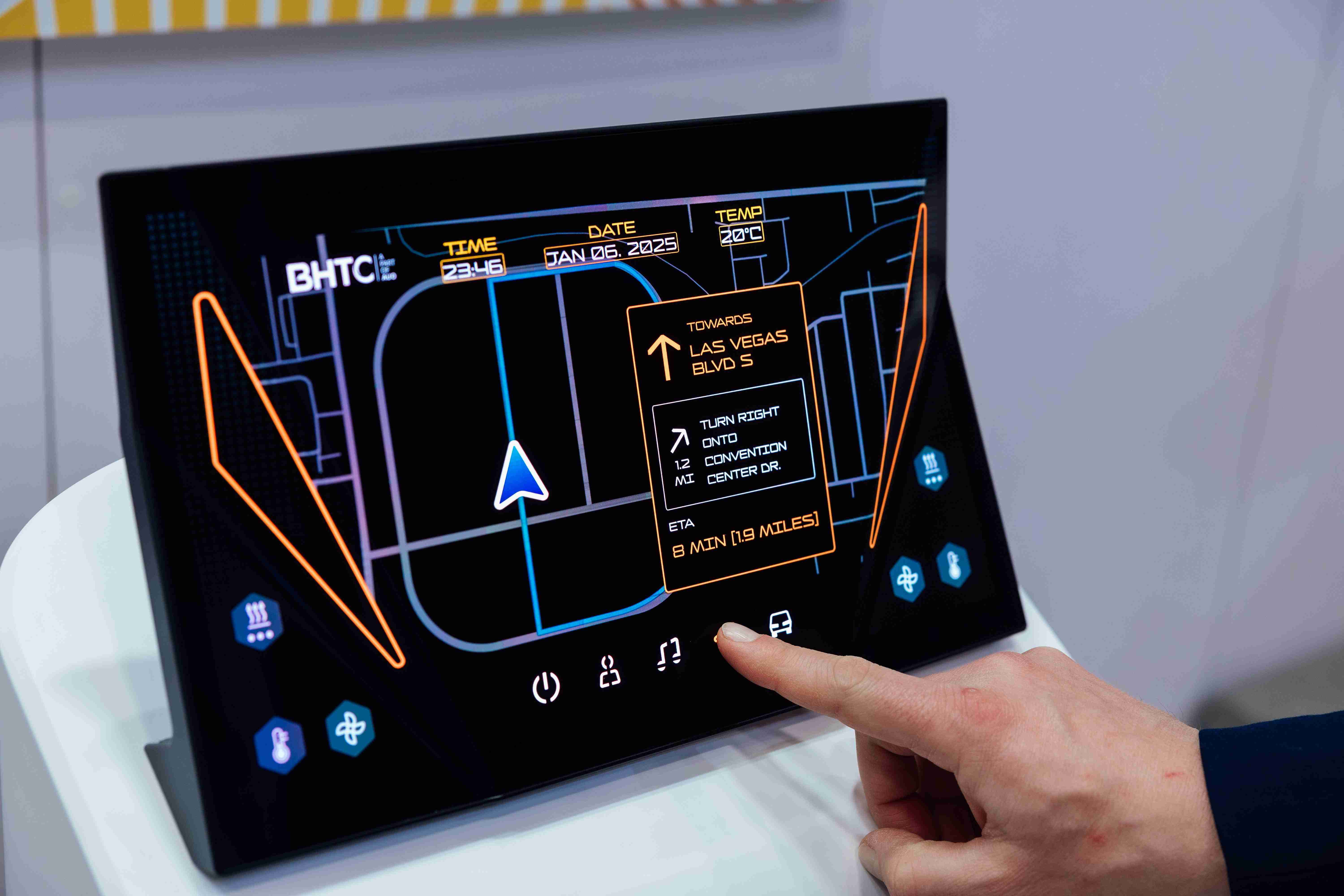 Micro LED可折迭触控显示器(Haptifold Display)结合BHTC多年HMI设计经验,,,,整合中控台和温度控制功能,,,以优美的曲面和独特的外型助力车内设计美学,,在辅以触控回馈下,,为驾驶带来更直觉的使用体验。。