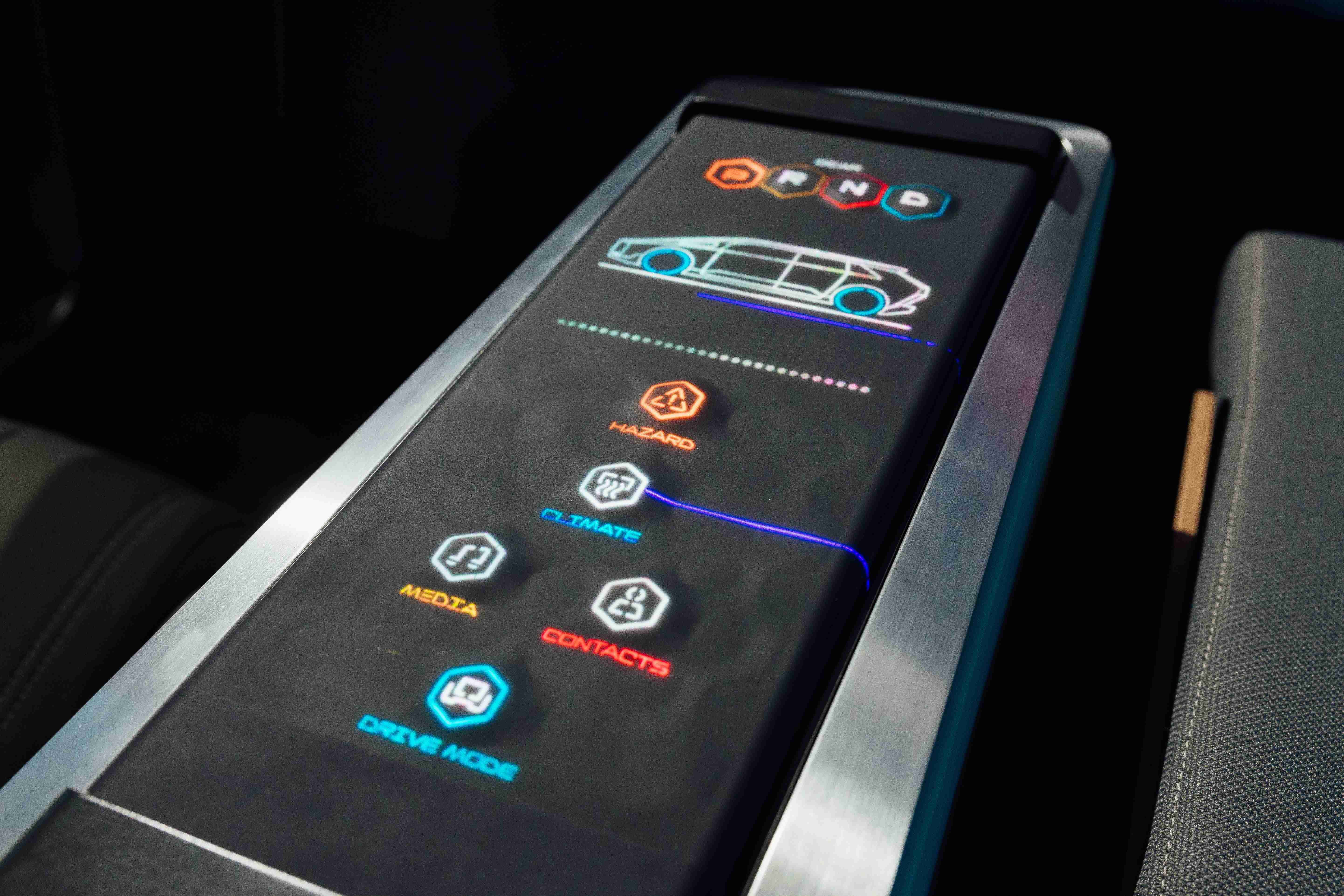 多变形态中控显示(Morphing Center Control)拥有动态变化的表面,,平时常态显示车辆功能,,进一步操作时,,则会隆起成为3D 按钮,,并在触控时以震动回馈,,,以精细的操作开创人机互动新境界。。。。 ![]()