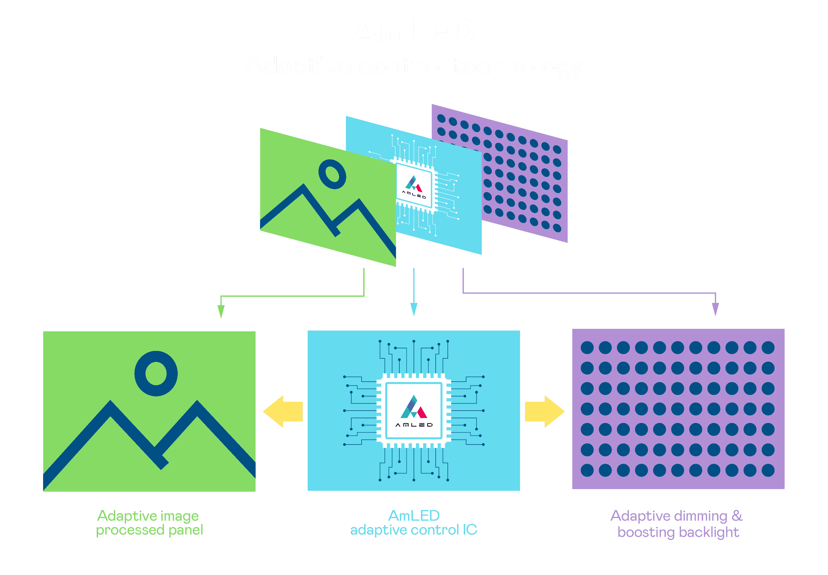 AmLED 具备更省电与低蓝光特性。。。。与一般的 LED 背光显示技术相比,,,由于 AmLED 常时处于局部调光状态,,,其功耗仅有前者的 50% 左右,,同时 AmLED 还具备低蓝光特性,,,,满足长时间使用的护眼需求。。。。